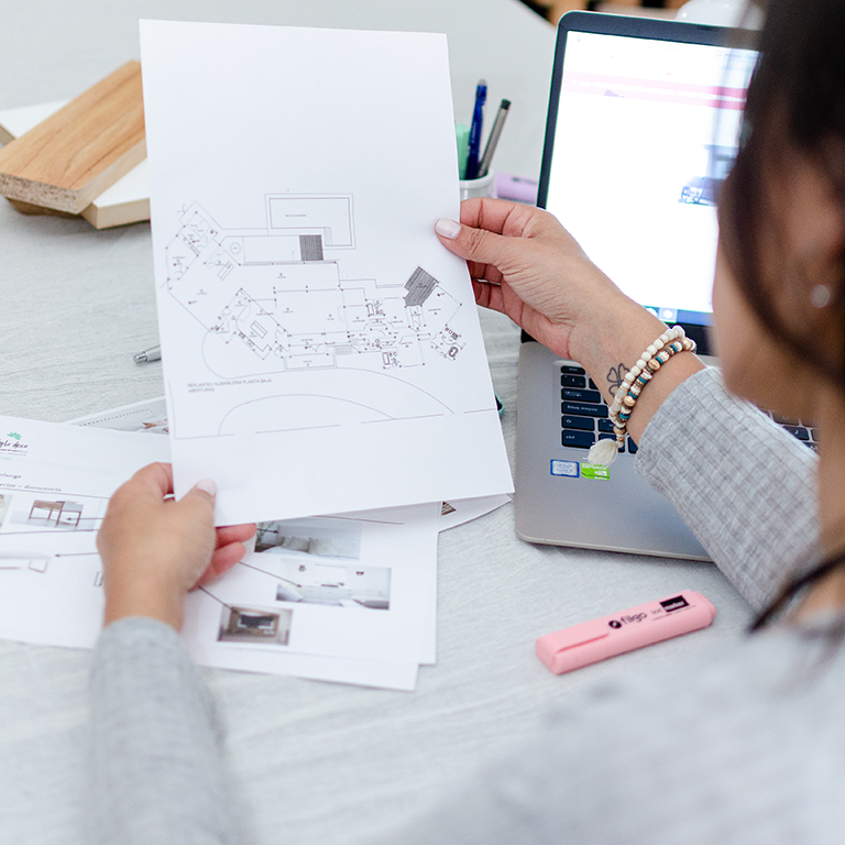 Flor buscaba una marca personal fresca y accesible que destacara su expertise en el diseño de interiores, mostrando a sus clientes su autenticidad. Para una Marca personal, proyectar su personalidad es clave, y Flor deseaba transmitir su alegría, pasión, calidez y empatía. Ella eligió sabiamente cada elemento: laptop, flores, libros; planos de sus obras, croquis, telas ¡son el guion perfecto para su sesión!